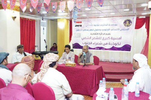 أشاد مساعد الامين العام للمجلس الانتقالي الجنوبي الاستاذ فضل محمد الجعدي بالدور الذي لعبه شعراء الشعر الشعبي في مرحلة الثورة وفي مرحلة المقاومة العسكرية في الحرب الاخيرة جاء ذلك خلال كلمه القاها في الأمسية الثقافية التي نظمتها الدائرة الثقافية للامانة العامة لعدد من شعراء الشعر الشعبي الذين تغنت بكلماتهم وقصائدهم اغاني الثورة الجنوبية..