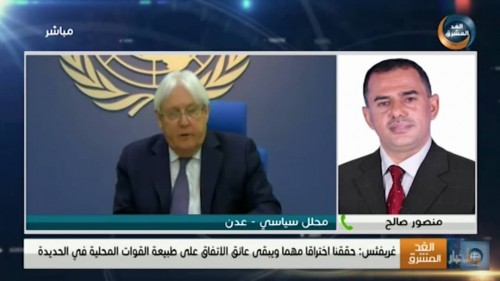 وأوضح صالح، أنه كان هناك خلل وقت توقيع اتفاق ستوكهولم وعدم وضوح فيما يتعلق بالسلطة المحلية والأجهزة الأمنية لذلك، واستغل الانقلابيين هذا الأمر وحاولوا تعطيل تسليم الموانئ الثلاثة وإعادة الإنتشار فيها وتسليمها للقوات التابعة لهم، ولذلك هم يطالبون باستلام السلطة المحلية التابعة لهم، مؤكدًا أن مارتن غريفيث يحول أن يهون من المشكلة وهي مشكلة معقدة وليست بالأمر الهين.