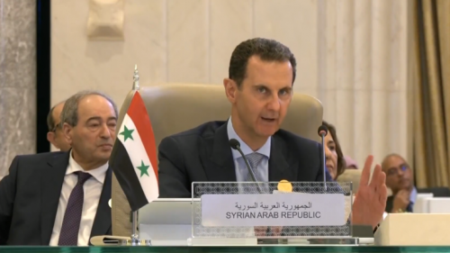 وتابع الأسد "نحن نعقد هذه القمة في عالم مضطرب فإن الأمل يرتفع في ظل التقارب العربي العربي والعربي الإقليمي والدولي والذي توج بهذه القمة والتي أتمنى أن تشكل بداية مرحلة جديدة للعمل العربي للتضامن فيما بيننا للسلام في منطقتنا للتنمية والازدهار بدلا من الحرب والدمار".