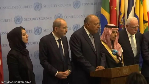 دان وزراء خارجية السعودية ومصر والأردن وفلسطين، قتل المدنيين في غزة، وذلك خلال مؤتمر صحفي للمجموعة العربية على هامش جلسة مجلس الأمن بشأن قطاع غزة، في نيويورك، الثلاثاء.