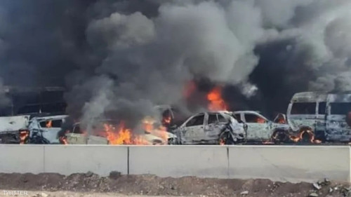 وتلقى اللواء محمود هويدي، مدير أمن البحيرة، إخطارا بالحادث، وكشفت التحريات، أنه أثناء سير سيارة على الطريق الصحراوي، على بعد نحو 132 كيلومترا شمالي العاصمة القاهرة، حدث تسرب للزيت، أدى بعدها إلى تصادم عدد كبير من السيارات، واشتعال النيران بعدد منها.