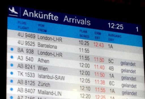 لوحة وصول الرحلات في مطار دوسلدورف الثلاثاء 24 آذار/مارس 2015