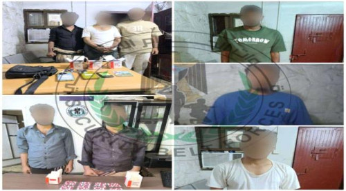 وأوضح المقدم عبدالله جعبل، قائد القطاع الأول، أن عملية الضبط جاءت عقب تلقي معلومات دقيقة ورصدٍ ميداني لتحركات عناصر العصابة، جرى على إثره استهدافهم بشكل مباشر، حيث تم القبض على عدد من المتهمين في مواقع متفرقة وهم: (ش.ف.ع.ص)، (ع.ح.ع.ع)، (أ.س.ع.ش)، (ي.س.ع.ش)، (ص.ح.م)، (ح.ن.ق.م)، (ب.م.أ.أ)، و(م.ن.ع.غ)، وبحوزتهم كميات من حبوب البريجبالين المحظورة.