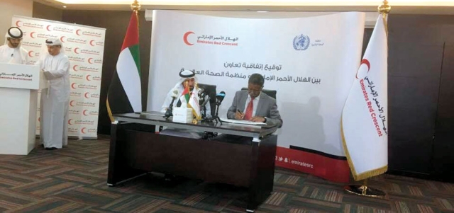 وكان الأمين العام لهيئة الهلال الأحمر الإماراتي، الدكتور محمد عتيق الفلاحي، وقع نهاية الأسبوع الماضي، اتفاقيتي تعاون مع منظمة الصحة العالمية ممثلة بشادول، لتنفيذ عدد من المشروعات والبرامج لدعم الخدمات الصحية في اليمن، ضمن مبادرة أطلقتها الهيئة تحت مسمى «نحن نرعاكم» لتطوير القطاع الصحي في اليمن.